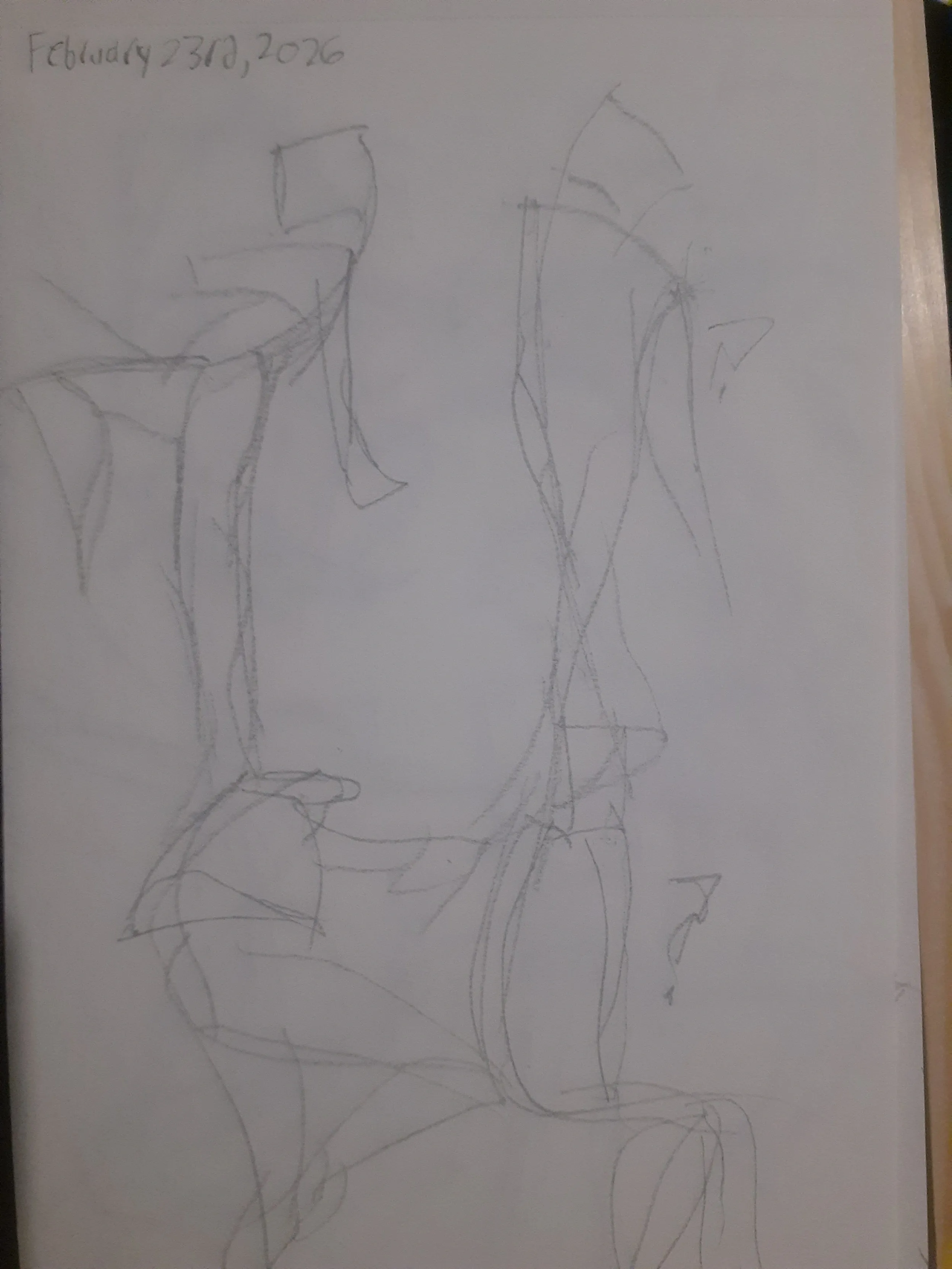 Since I'm going back to doing anatomy studies I'm going gestures again. I showed these to my friend Ian for feedback and it told me some of these have good weight to them but are kind of lacking and it said I should really try to get more of that anatomy and structure in even if they're a minute. It also told me to not do the square heads, not sure i'll do the loomis head like it did in it's drawovers of my gestures but idk try something out. It also suggested maybe do it in 2 minutes so maybe I'll try that sometime maybe give another shot at the 1 minutes with trying to do more structure and if i can't maybe extend the timer. Would mean less photos I have to post since I'd reduce the amount to 30 gestures instead of 60. Not sure how well I'll do with any of that because honestly I feel like I struggle with having control of my lines that's why they're so messy and I was surprised when Ian said i had good line confidence cause I do not feel like I do at all.
