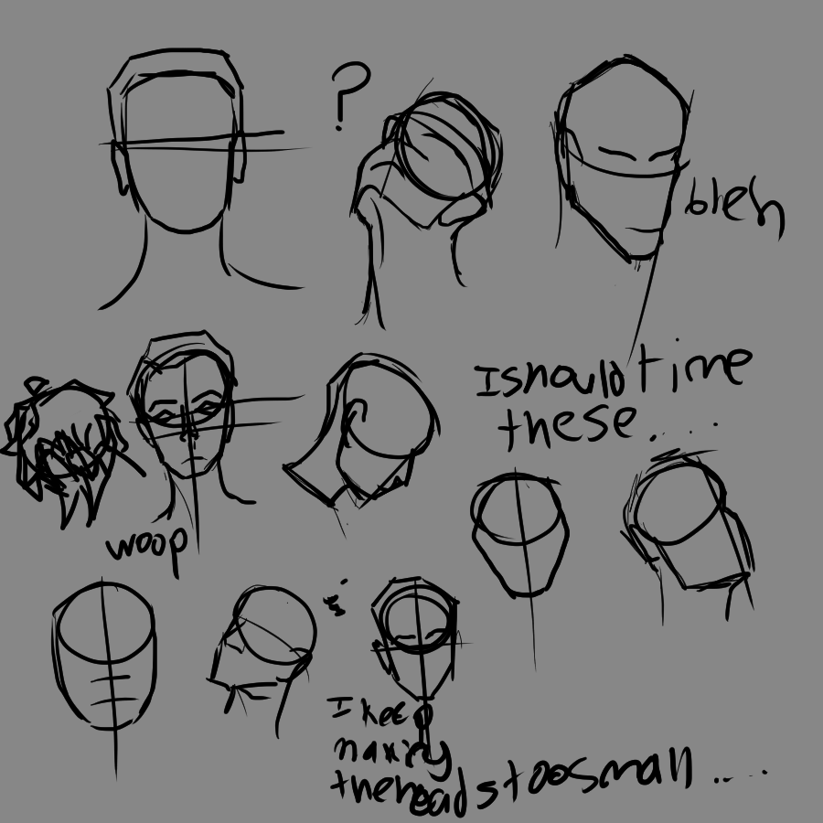 I'm planning on doing more art practice like this for the next couple days. I don't know how much it'll help sometimes I feel like I never absorb my study info when I go to draw normal (nevermind I don't know my artstyle yet i've just been drawing without any distinct intent), but it's still good to practice and I'm sure it is helping even if I may not notice it right away. The piece I'm planning on has a time limit so it's not gonna wait on me finding my artstyle and I need head practice (also other once I actually figure out what I want to draw) for it so wanted to get more familiar.