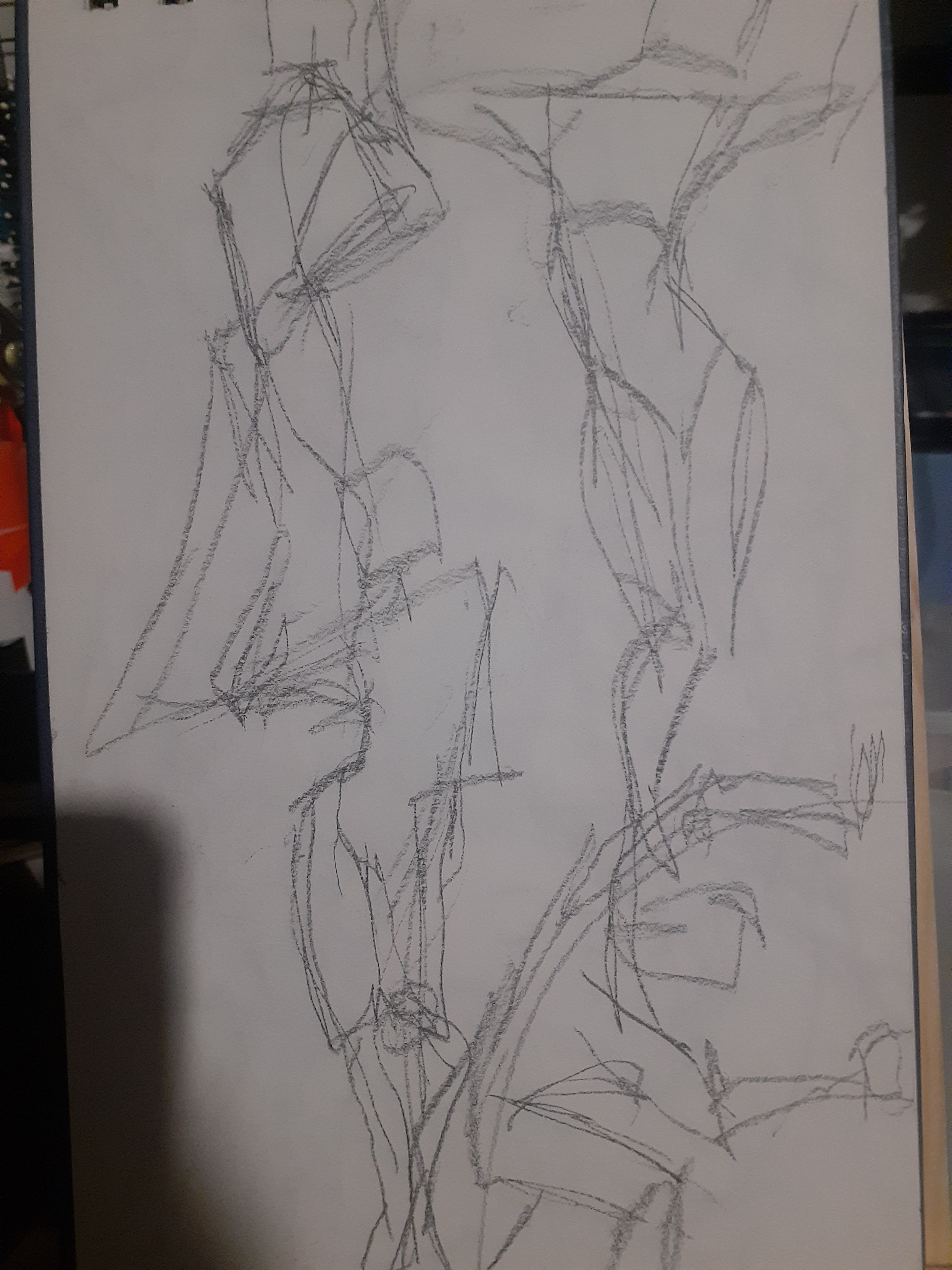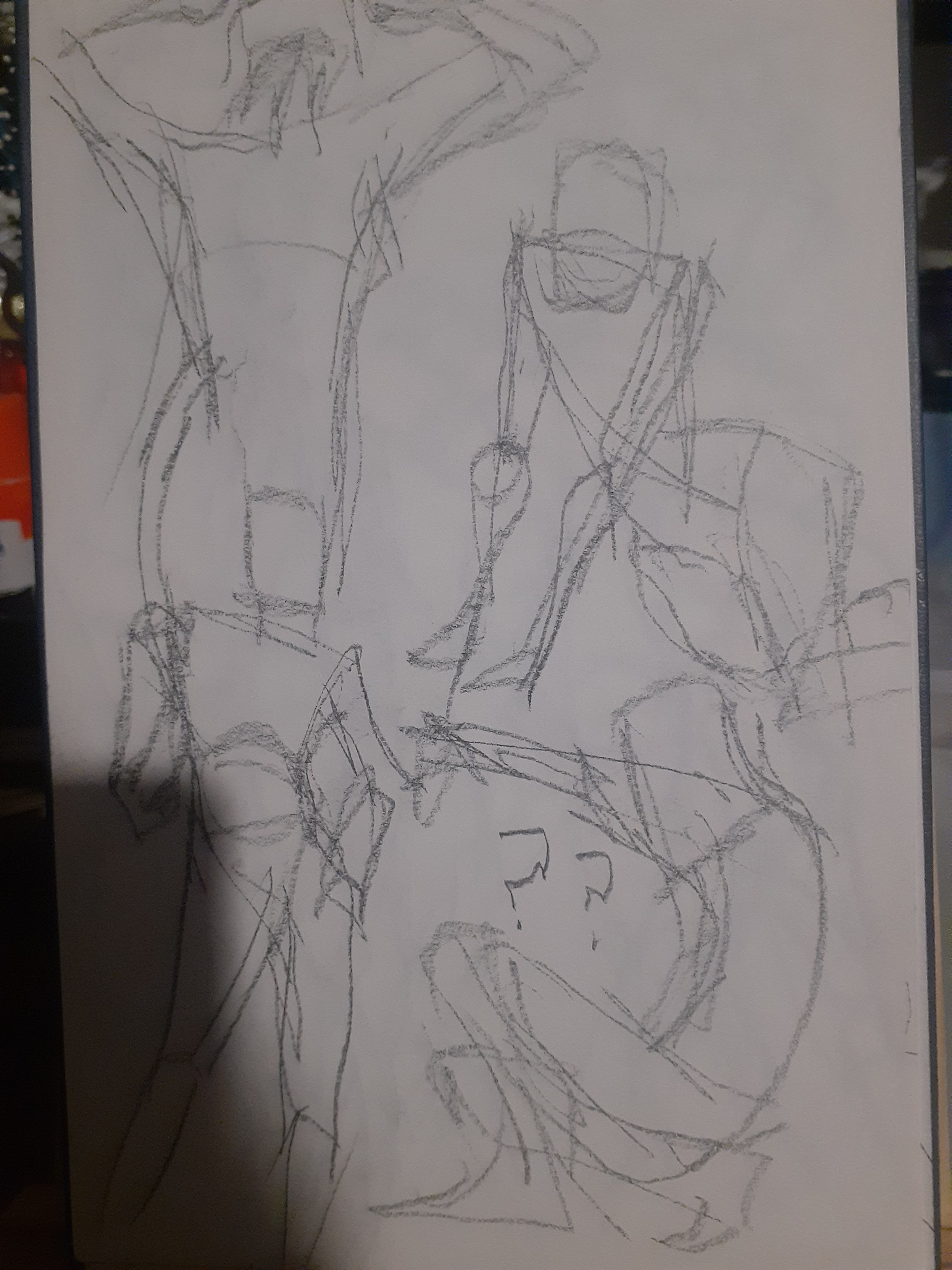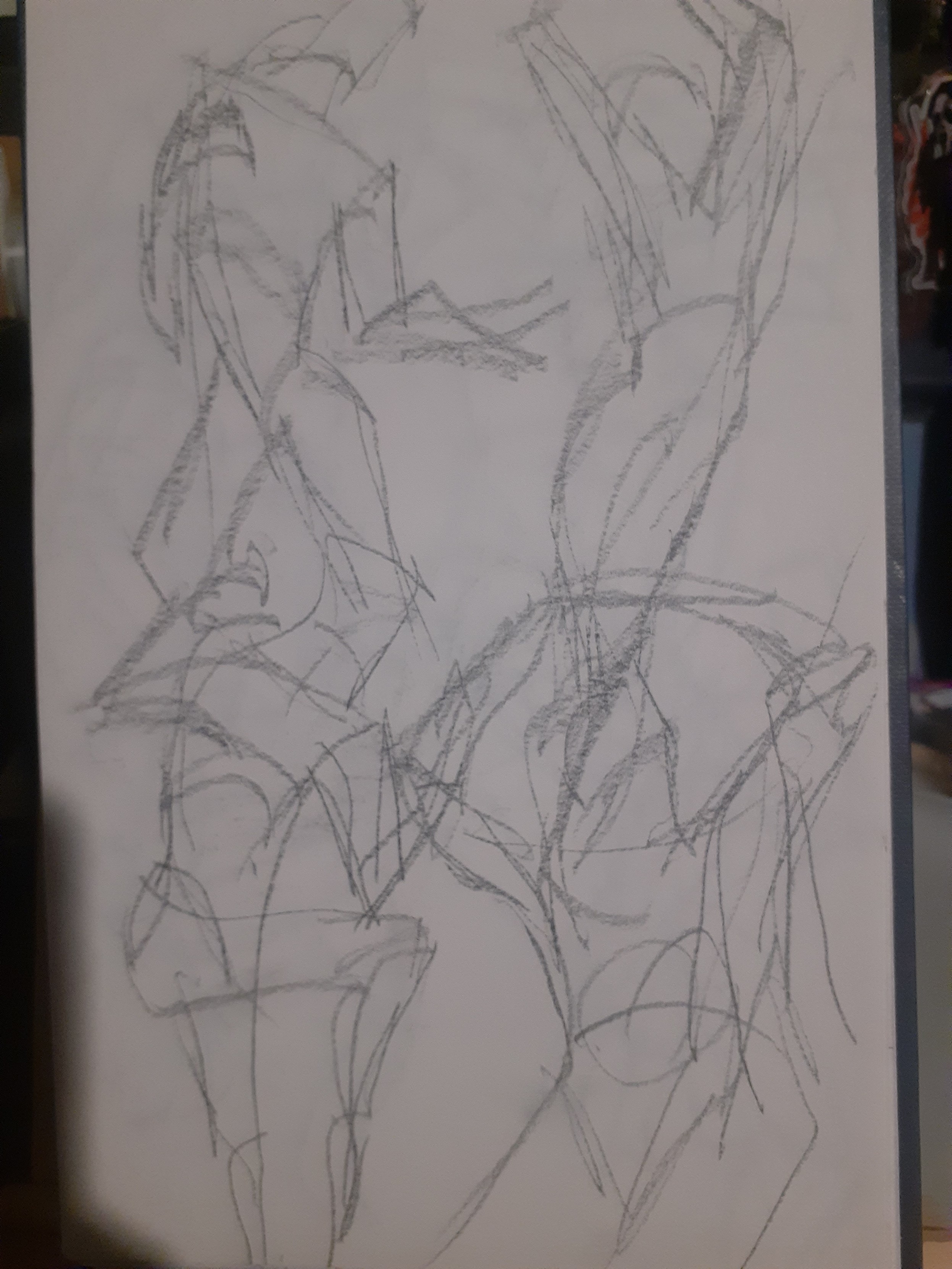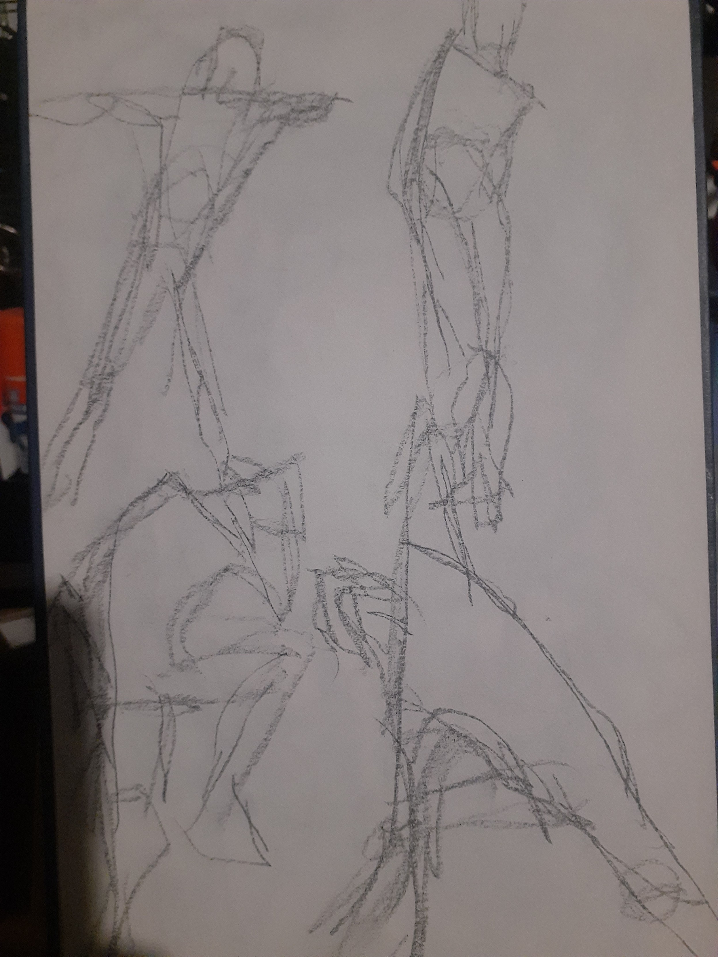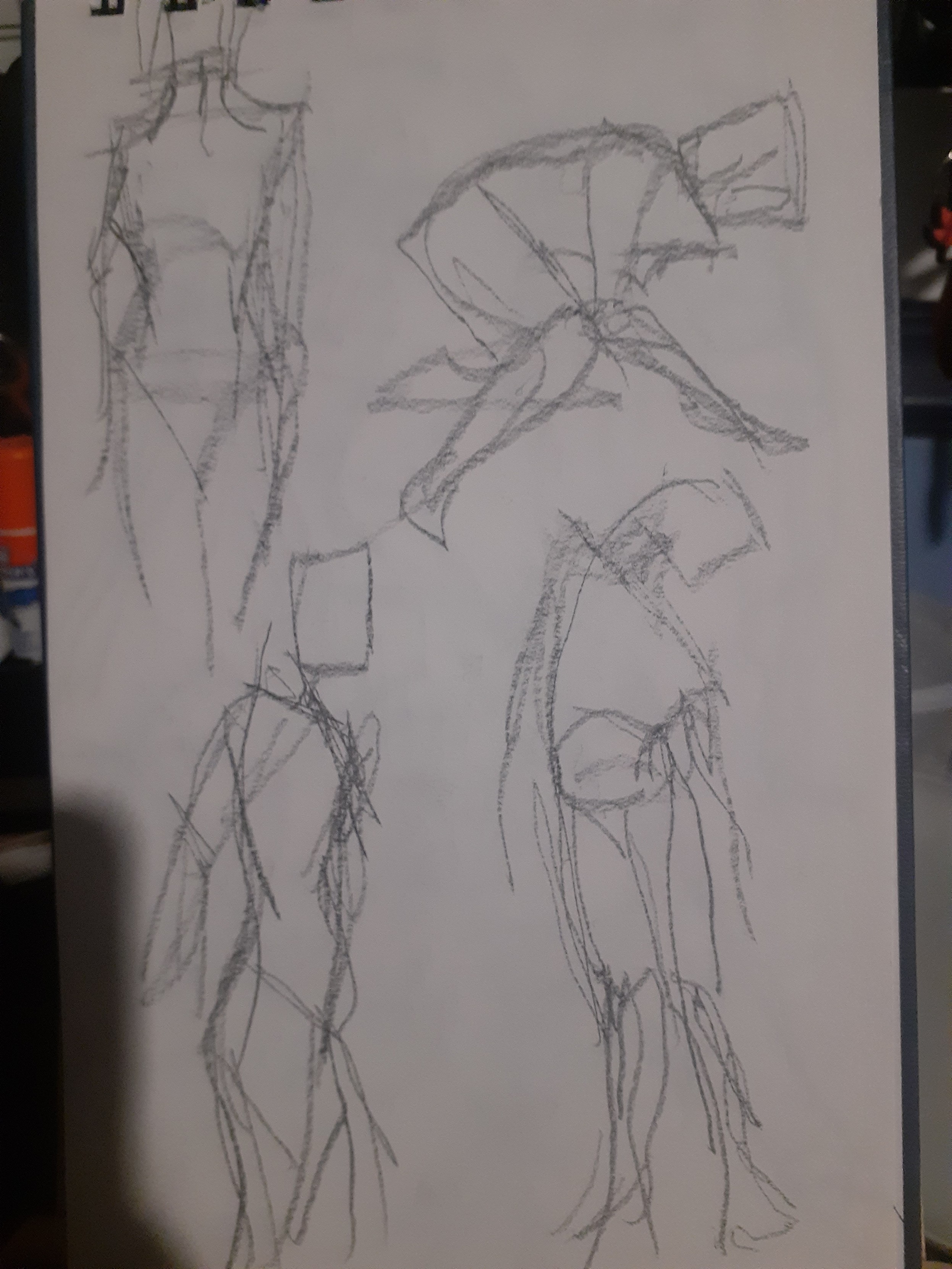 Now why did I do 60 gestures? Cause of a video I saw, I'm not gonna link it cause honestly I have no say on if this is actually a good idea or not and the original video says to do it for 6 months but for now I'm just gonna try to give 1 month a try. Though the video says without fail and I think I'll allow myself to fail a little bit partly cause I want to do other things too, also cause doing these honestly tired my arm out a lot and today my shoulder is definitely feeling stiff probably from yesterday haha. Probably a combination of not having done drawing like this in a while with a desk easel and all that and even when I did I only did like 10 at a time. In the video the guy says he would do an hour of 60 1 minute gestures, and then 1-2 hours of study, and then 3 hours of personal work and I'd like to do that though because of how tired my arm was I did the gestures and then rested for most of the rest of the day, though I did do about 50 minutes of "personal" work before my arm and hand got tired again.