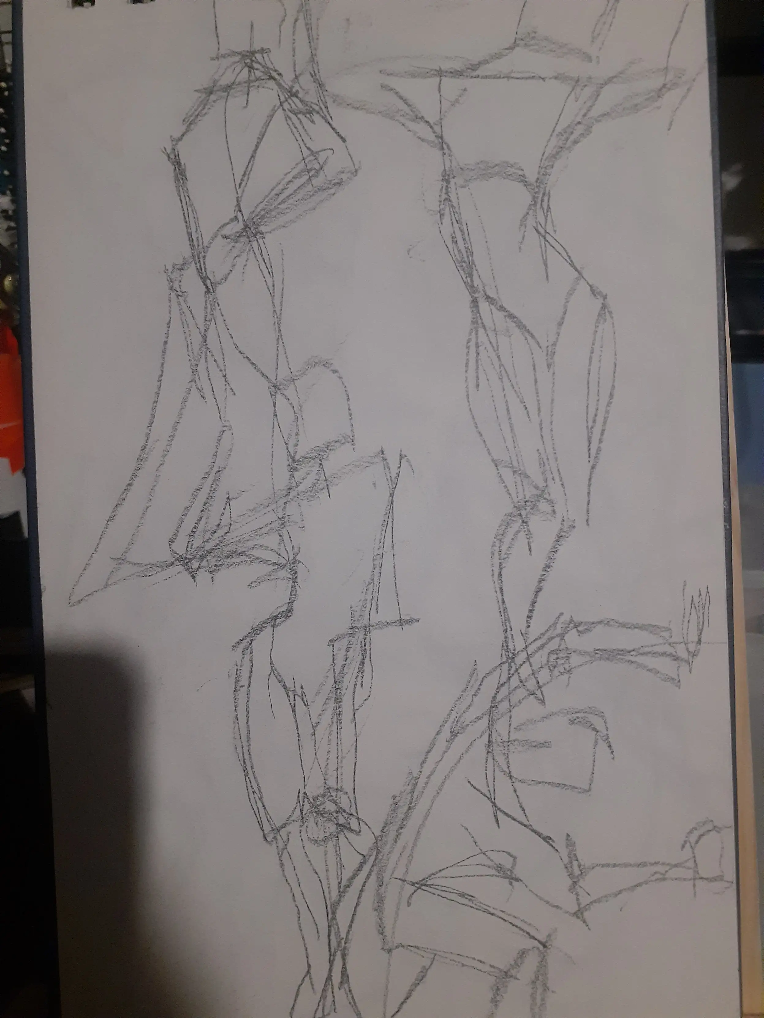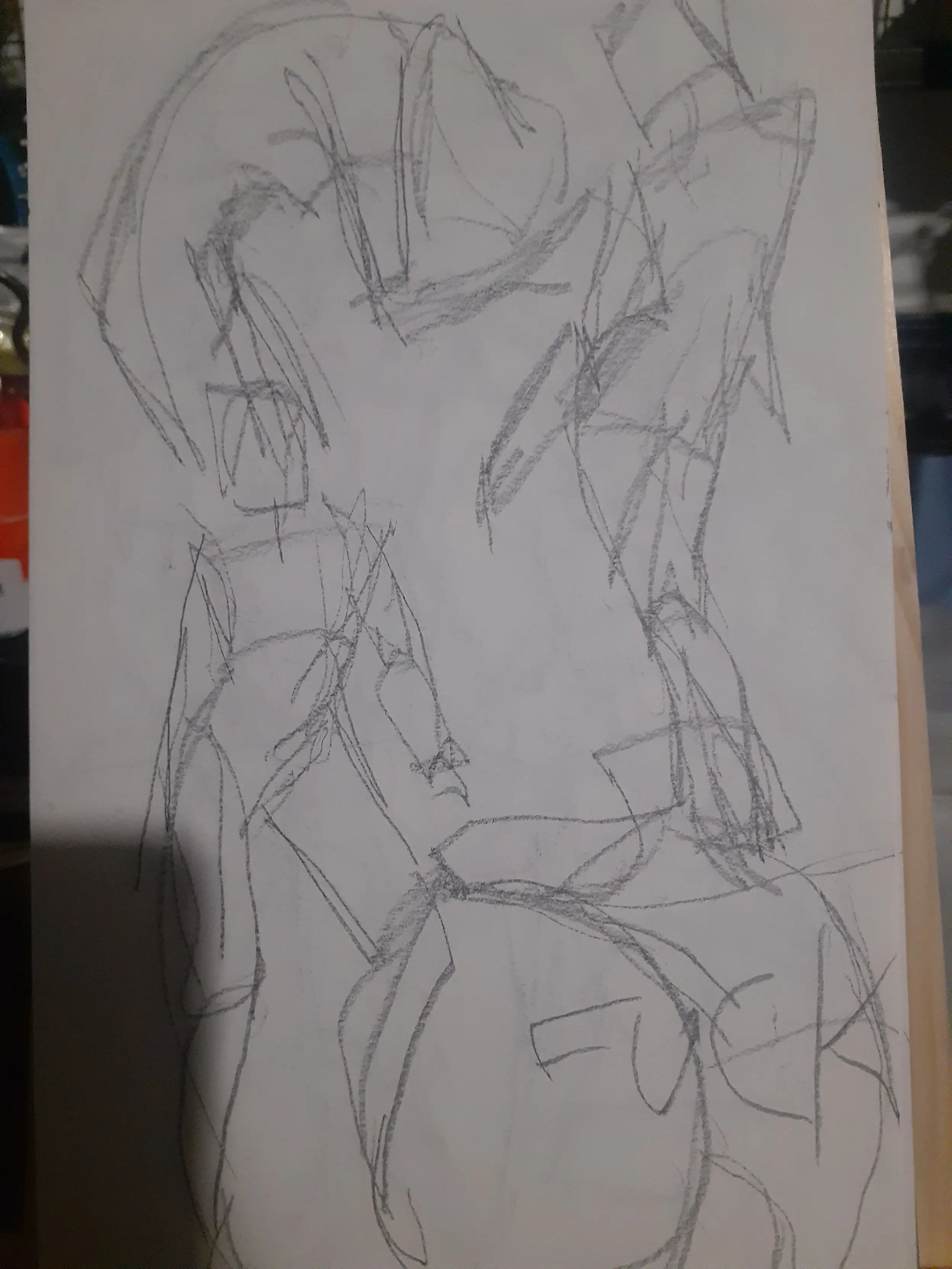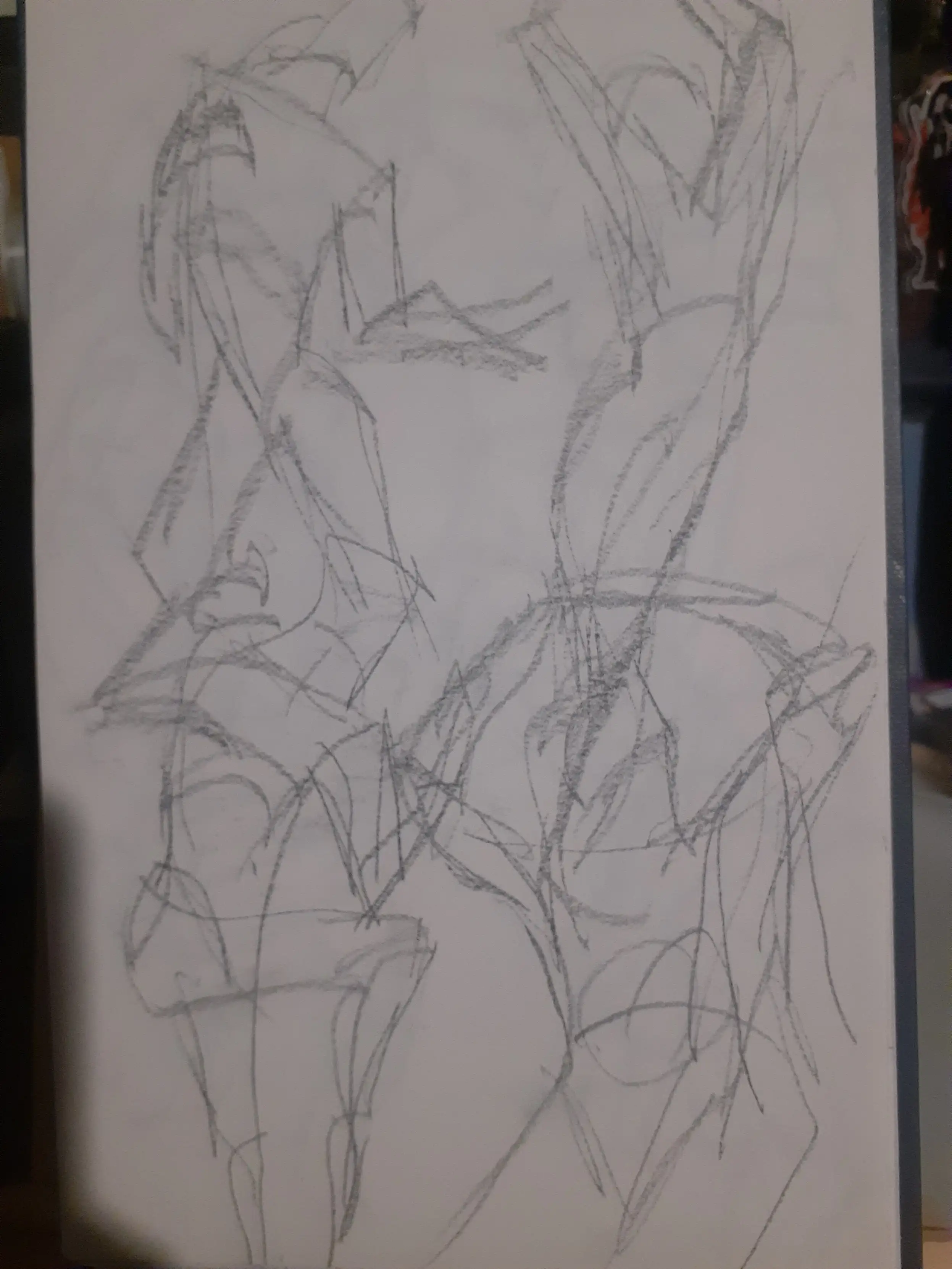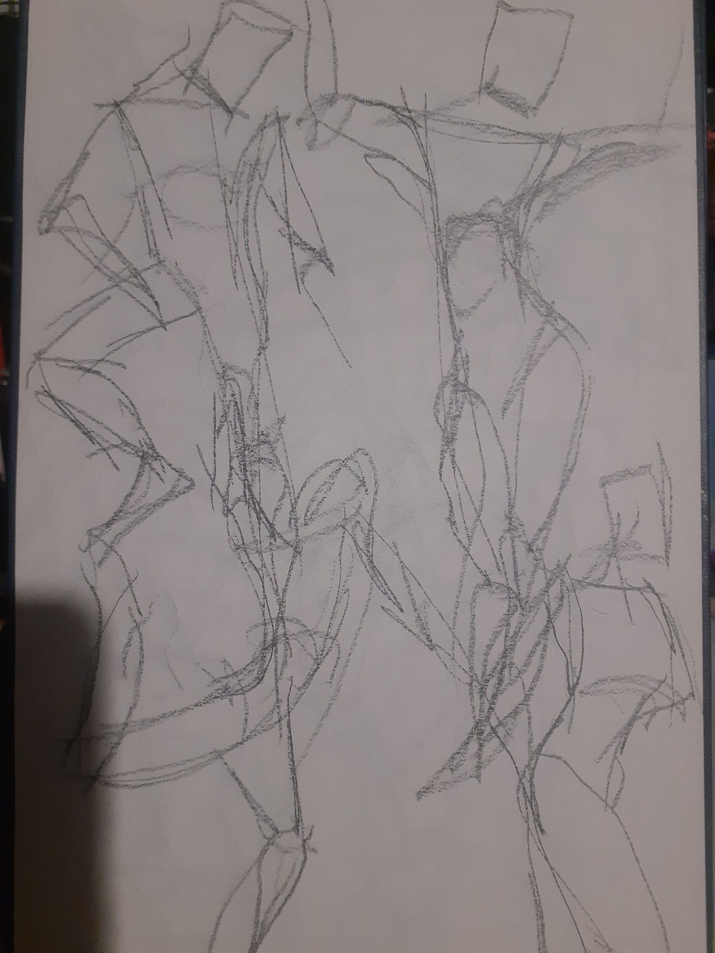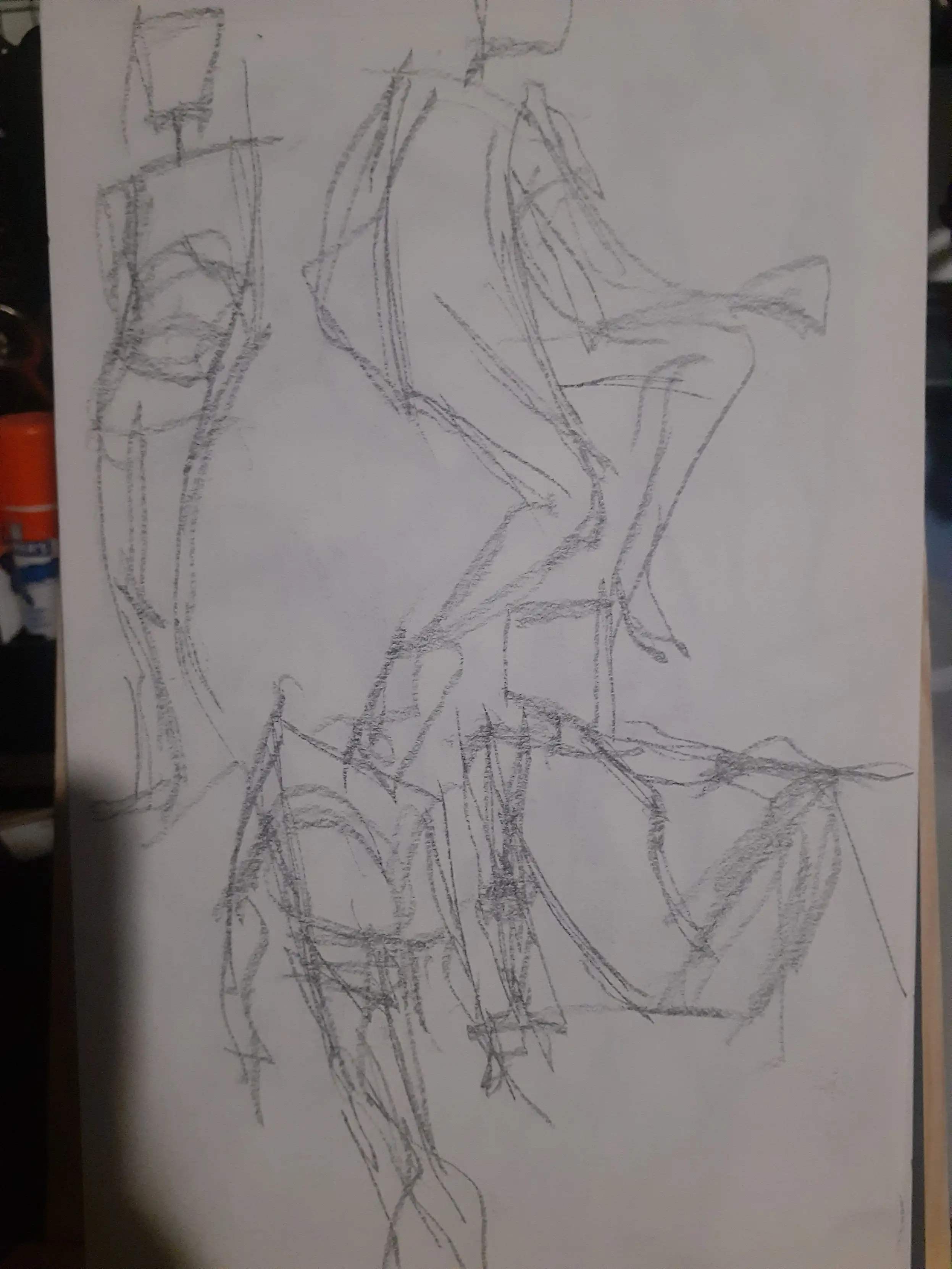 Now why did I do 60 gestures? Cause of a video I saw, I'm not gonna link it cause honestly I have no say on if this is actually a good idea or not and the original video says to do it for 6 months but for now I'm just gonna try to give 1 month a try. Though the video says without fail and I think I'll allow myself to fail a little bit partly cause I want to do other things too, also cause doing these honestly tired my arm out a lot and today my shoulder is definitely feeling stiff probably from yesterday haha. Probably a combination of not having done drawing like this in a while with a desk easel and all that and even when I did I only did like 10 at a time. In the video the guy says he would do an hour of 60 1 minute gestures, and then 1-2 hours of study, and then 3 hours of personal work and I'd like to do that though because of how tired my arm was I did the gestures and then rested for most of the rest of the day, though I did do about 50 minutes of "personal" work before my arm and hand got tired again.